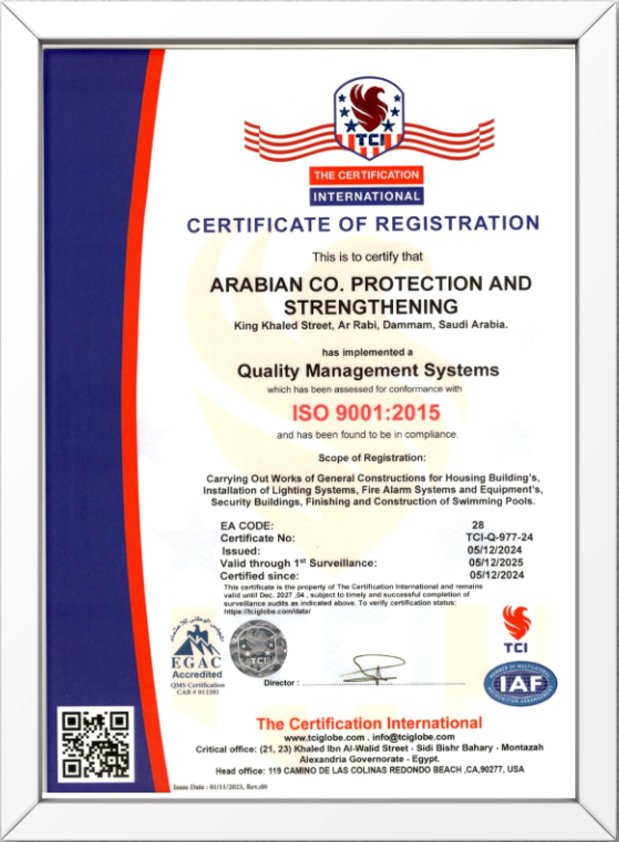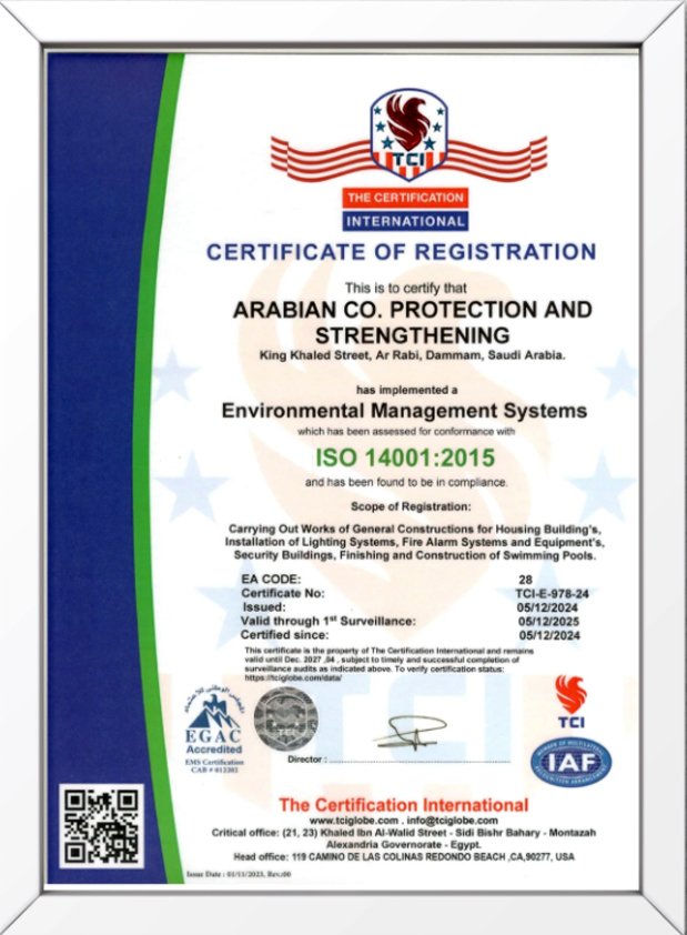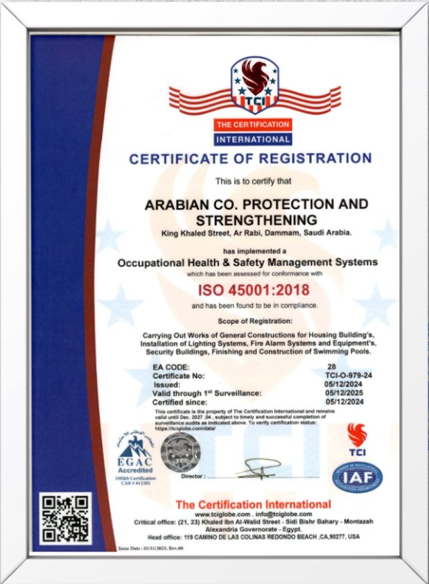 At Arabian Company, we believe that true quality is not claimed—it is certified. Our commitment to engineering excellence, safety, and environmental responsibility is validated through internationally recognized certifications and accreditations. These certifications demonstrate our capability to deliver projects to the highest global standards while complying with all local regulatory requirements.